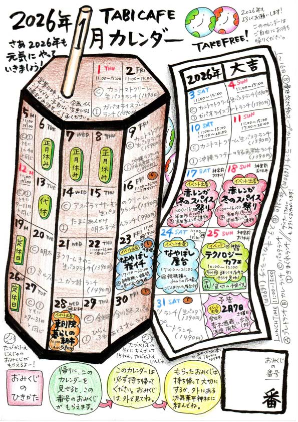 ☆パンのお持ち帰り販売日は、お店にある『TABICAFEカレンダー』をご覧ください。