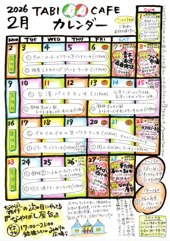 ☆2026年2月の営業予定(2026年1月23日更新)